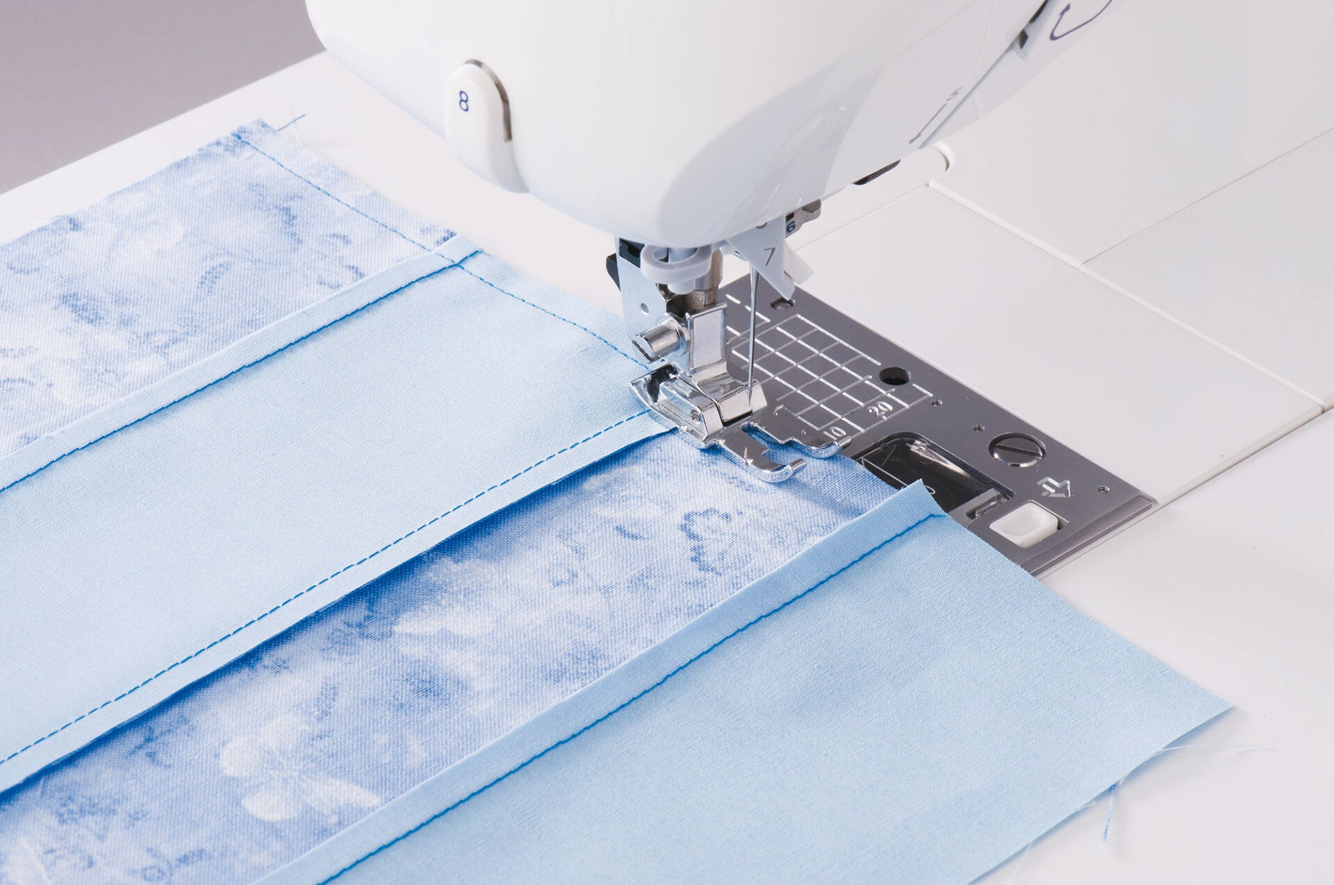 Unieke sensor methode om de perfecte knoopsgaten in drie breedtes te kunnen naaien. Stabiele doorvoer bij iedere stof en met meerdere lagen en diktes, dankzij de klemplaat.