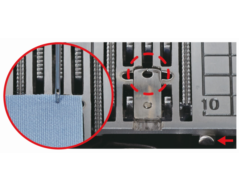 Duw de hendel naar links en de naaldspleet is nu omgezet naar een naaldgat, zodat de ruimte rondom de naaldinslag kleiner is en dunne stoffen worden niet in de steekplaat geduwd.
