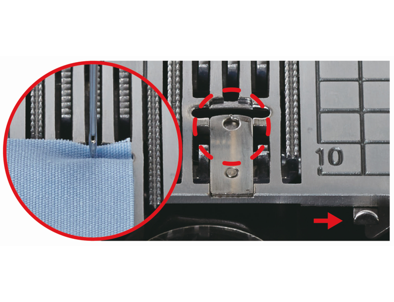 Duw de hendel naar links en de naaldspleet is nu omgezet naar een naaldgat, zodat de ruimte rondom de naaldinslag kleiner is en dunne stoffen worden niet in de steekplaat geduwd.