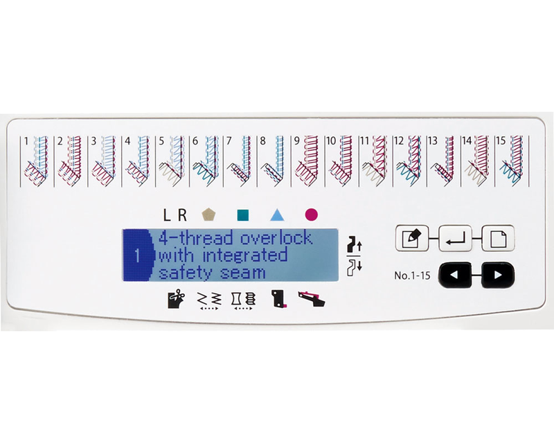 2/3/4 draads overlock van het merk Juki. Eenvoudig in te rijgen door middel van lucht, een naaldinrijger een een LCD-scherm met informatie. Het LCD-scherm geeft je aanwijzingen over hoe je de 15 verschillende steken moet instellen. Ook zeer veilig dankzij de veiligheidsschakelaar. De machine is voorzien van een afvalbakje. 2 jaar + 3 jaar aanvullende garantie.