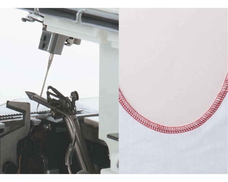 De afstand tussen de naald en het mes is 9.95 mm (bij conventionele modellen is dit 15.5 mm), waardoor zelfs de scherpste bochten er fraai uitzien.