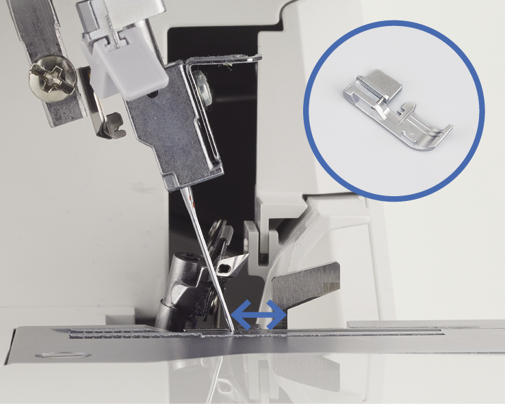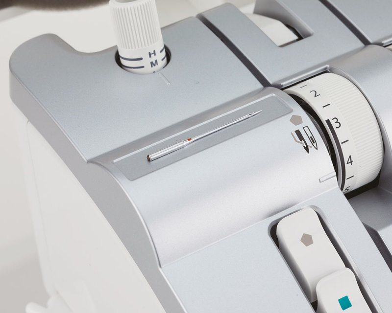 Schakel eenvoudig over van 3 naar 2-draads naaien. Duw de 2-/3-draadsomvormer naar links en klaar.