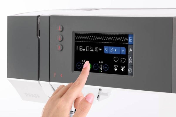 Elektronische naaimachine van het merk Pfaff met een dubbel transport (IDT-syteem). De machine heeft 201 verschillende nuttige steken, rekbare steken, siersteken en eenstapsknoopsgaten. Dubbel transport, LCD scherm en een grote naaioppervlakte. Bij de machine is een harde kunststof beschermkap voorzien.